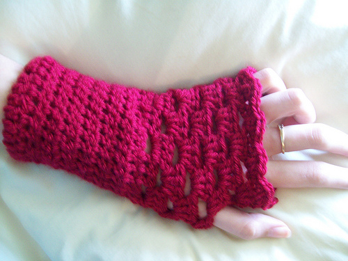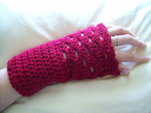 The Fingerless Gloves Fanatics group on Ravelry is having a monthly KAL/CAL featuring new patterns by group members & I was lucky enough to get the February crochet slot. This pattern was created especially for the CAL & will be available free here during the month of February (& possibly for longer).
