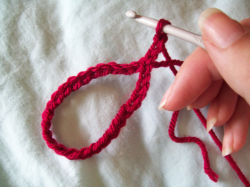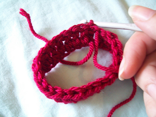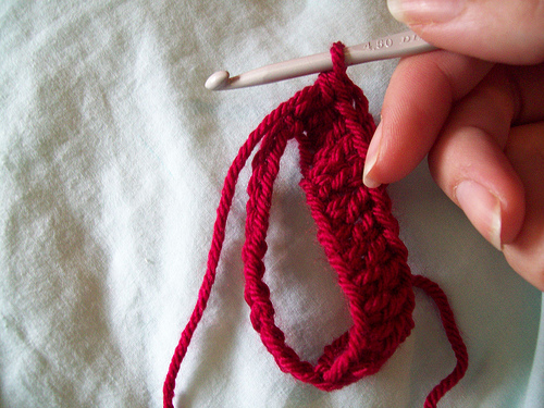 Row 2 - Working along underside of 11ch twice. Now working along Row 1 twice.