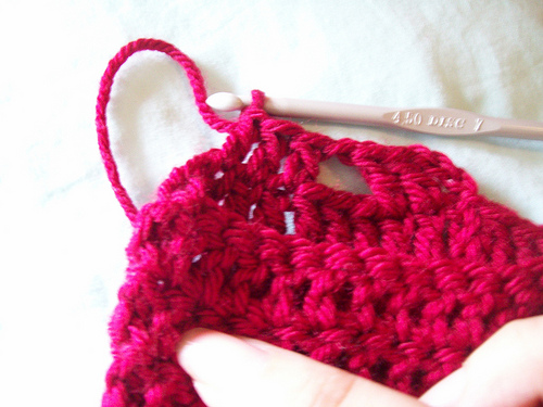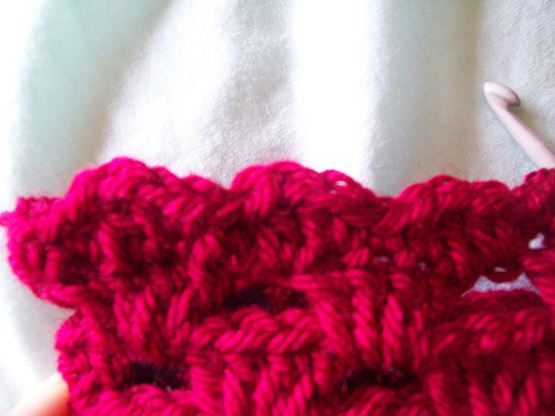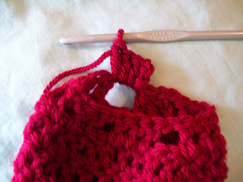 Continue working in the round, beginning each round with sl st in the first 4 sc of the first arch in the previous row.