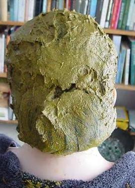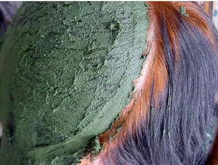 - تحضر الحنه الخضرا بنفس الطريقه العاديه (حنه + ليمون + ماء ) ممكن اضافة قرنفل او املا او شاي للخليط