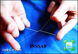 خذي قطعة من الخيط وقومي بربطها بشكل عقدة مثل ماهو موضح في الشكل