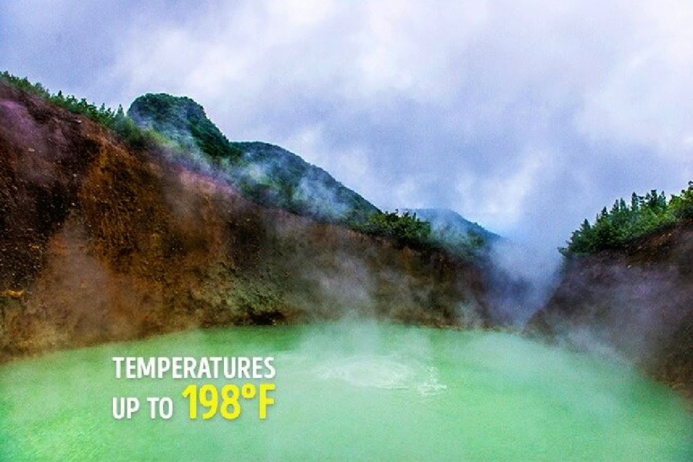 و هذه البحيرة تقع في منطقة الدومينيكا ، من أسخن بحيرات في العالم ، حيث تبلغ درجة حرارة البحيرة حوالي 85 درجة مئوي
