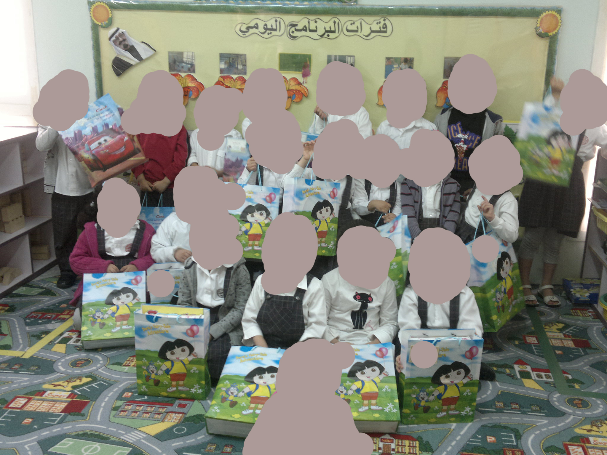 وهذي صورهم بعد مااستلمو الهدايا وقالو لي شكرا جزاك الله خيرا فديتهم واولهم حبيبة قللبي بنوتتي الله يرزقني برها هي وخواتها