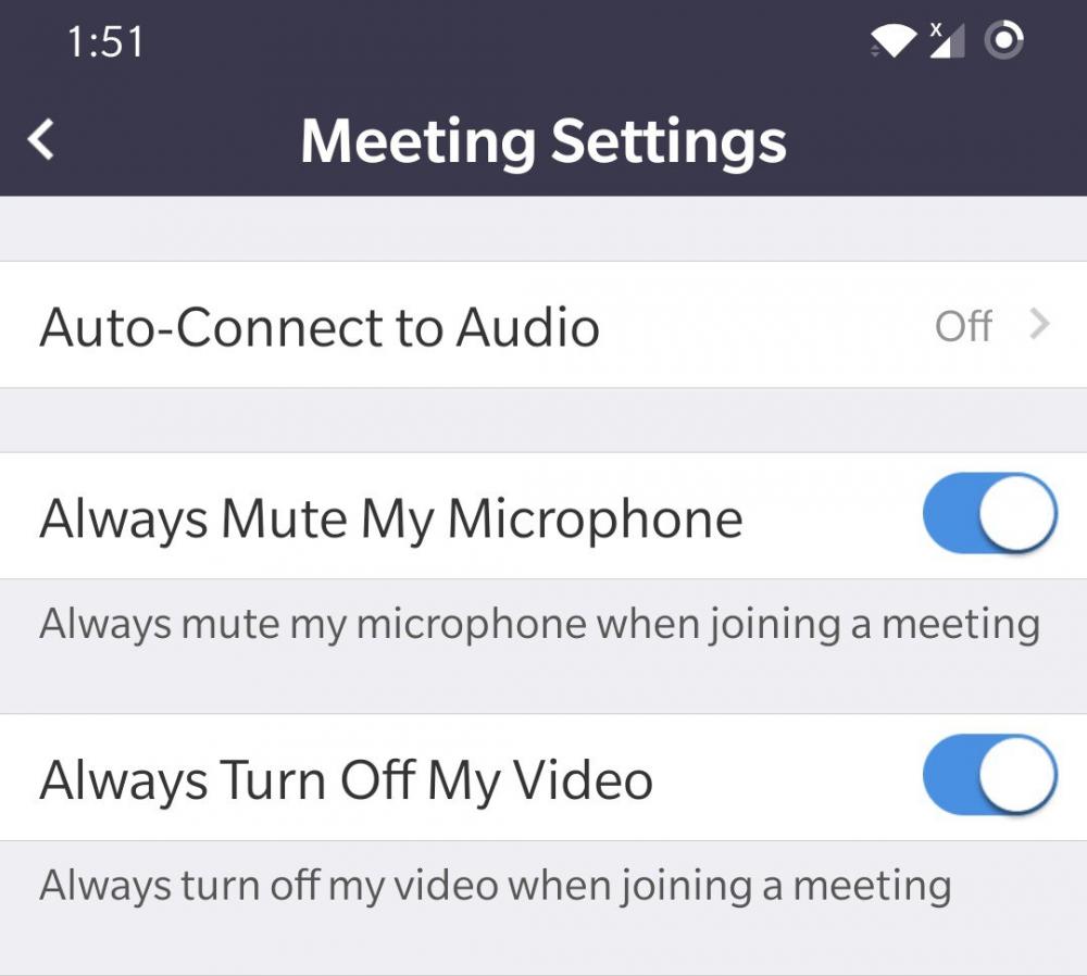 من الاعدادات اول خيار كتم المايك ثاني خيار اغلاق الفيديو