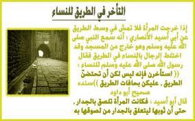 ((إستأخرن ؛ فإنه ليس لكن أن تحققن الطريق عليكن بحافات الطريق. فكانت المرأة تلتصق بالجدار ،