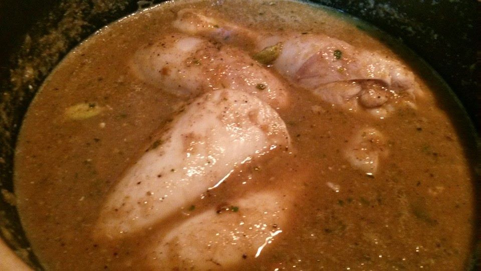 ملعقتين زيت -ملح -حبتين فلفل أسود -حبتين هيل -حبتين قرنفل- قرفة .