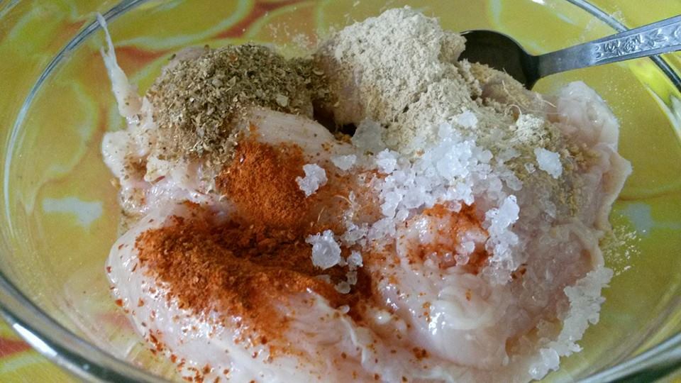 يتبل الدجاج بالزنجبيل و الشطه و الكزبرة ثم يقلى بقليل من الزيت أو يحمر في الفرن حسب الرغبه الهدف فقط تحمير الدجاج وليس النضج .