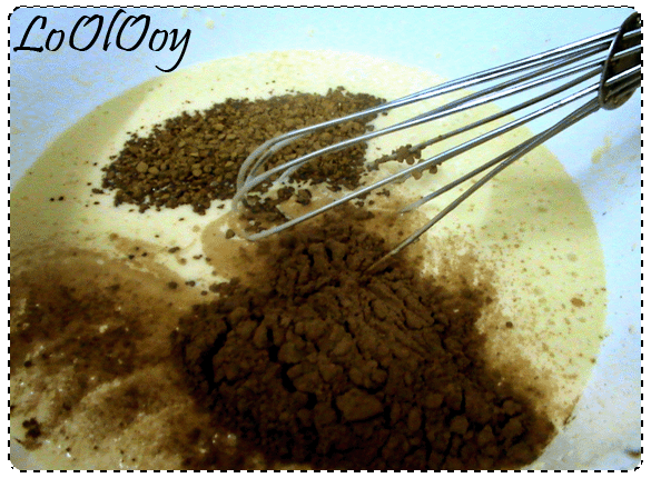 والان نبدا بخلطالمقادير السائئلة مع بعض ثم نضع عليها الكاكاو والنسكافي ونخلط حتى يذوب النسكافية قليلا