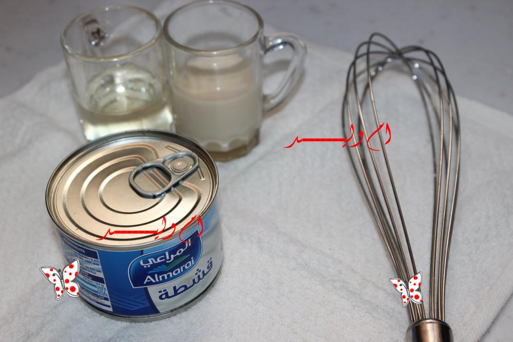 نخلط الزيت وحليب لونا والقشطه مع بعض