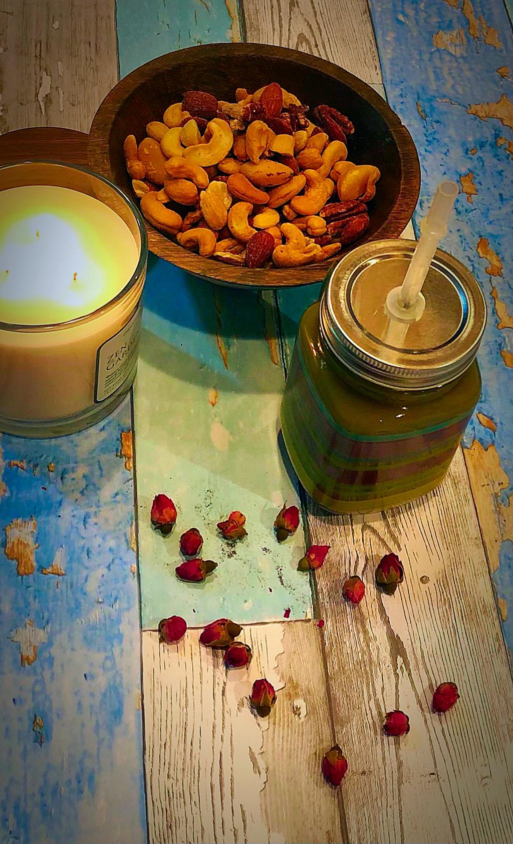 بعدها نضع ثلج ونضع عليه حليب المراعي