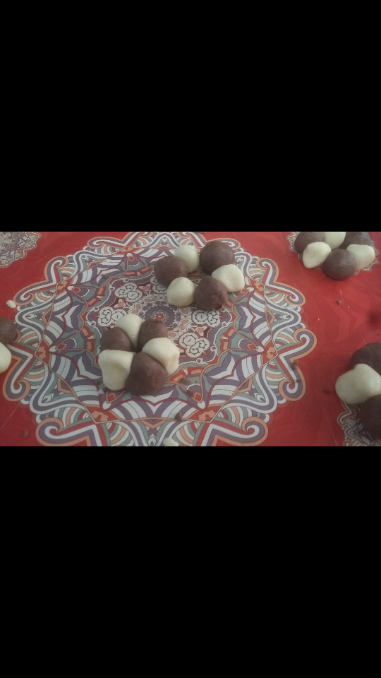 نقسم كامل العجين ( الابيض و الاسود ) الى كور صغيرة