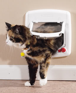 اخترع إسحاق نيوتن باب القطط. كان نيوتن يجري تجربة في غرفة مظلمة بها شعاع ضوء من نافذة. ظل أحد قططه يفتح الباب وخرب تجربته. جعل باب القطط نيوتن وقطه سعيدين.