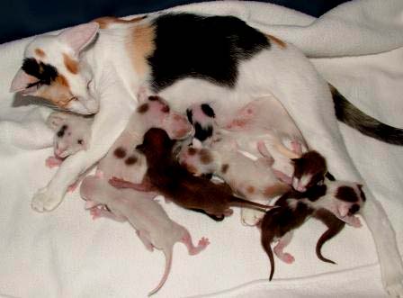 تلد معظم القطط الإناث ذرية تتراوح بين واحد وتسعة قطط. أكبر ذرية معروفة ولدت كانت 19 قط، حيث نجا منها 15 قط.