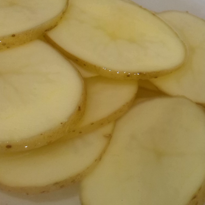 اول شيء بطاطس مقطع حلقات لاسميكةة مرة وسط رفيعة انقعي في ماء وملح شويات ..