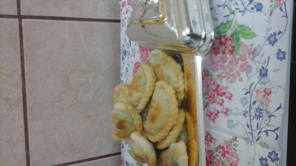 تخلط جميع المقادير مع بعضها ثم تعجن باالماء حتى تصبح العجينه متماسكه وتغطى وتترك مدة ساعه ثم تفرد وتقطع دوائر وتحشى باالحشو الي تحبينه وتسكر وتلف مع الاطراف بالشكل الجميل الي انتم شايفينه وتقلى وتقدم...