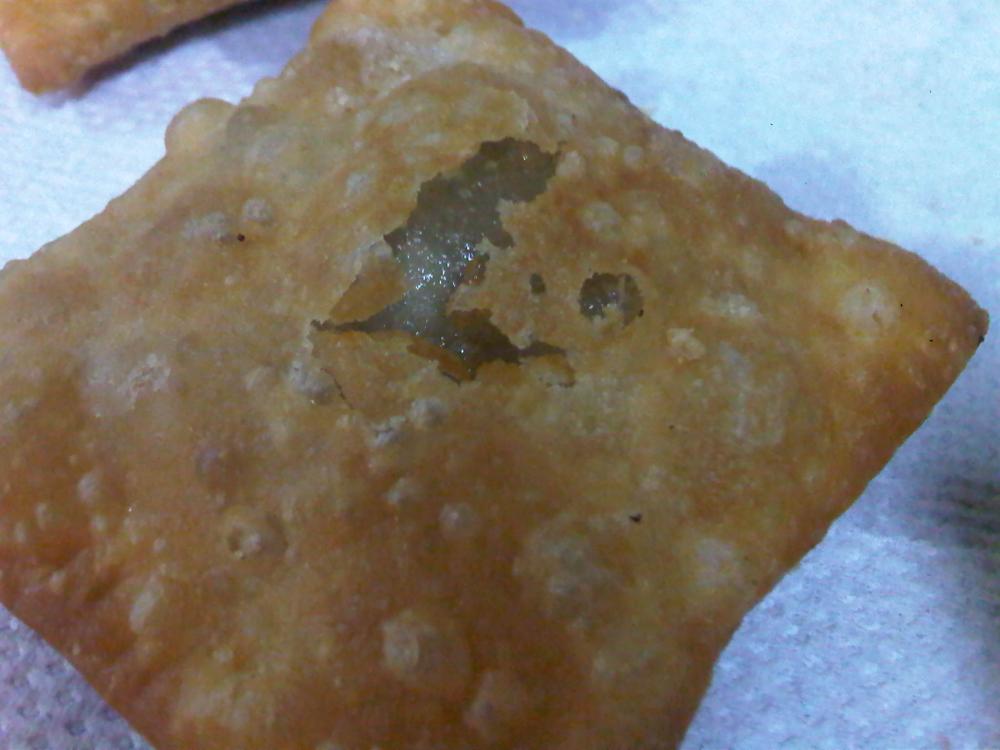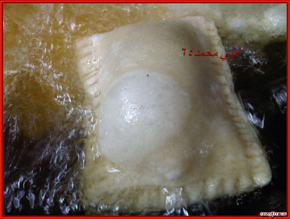 بعد لما ترتاح نسخن زيت غزير ونقليها من الناحيتين لغاية لما تاخد اللون الدهبي وحتتفاجئي بانتفاخها وتوريقها بالرغم انها مافيهاش خميرة