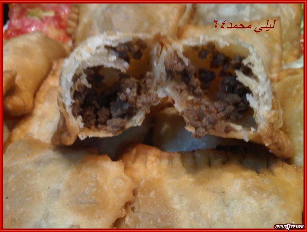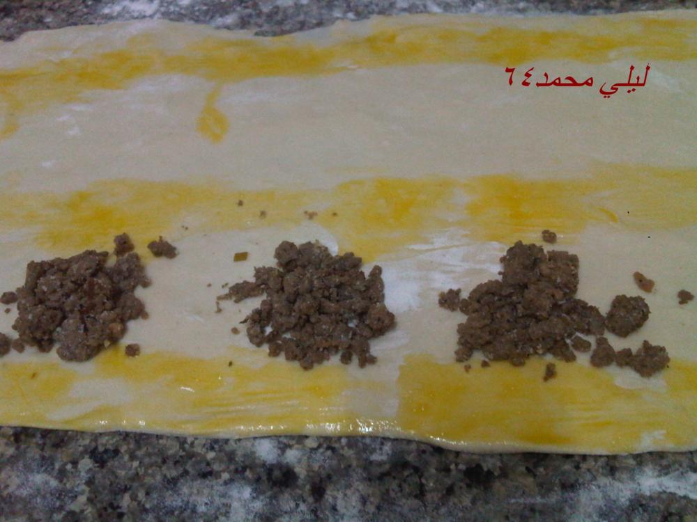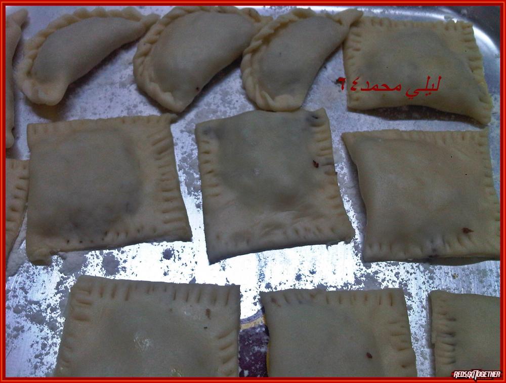 Iنشكل بطريقتين : الاولي نقطع العجينة قطع في حجم الليمونة ونسيبها تستريح وبعدين نفبططها كويس ونخليها رقيقة ونحط اللحم المفروم المستوي ونقفل كويس والصور توضح