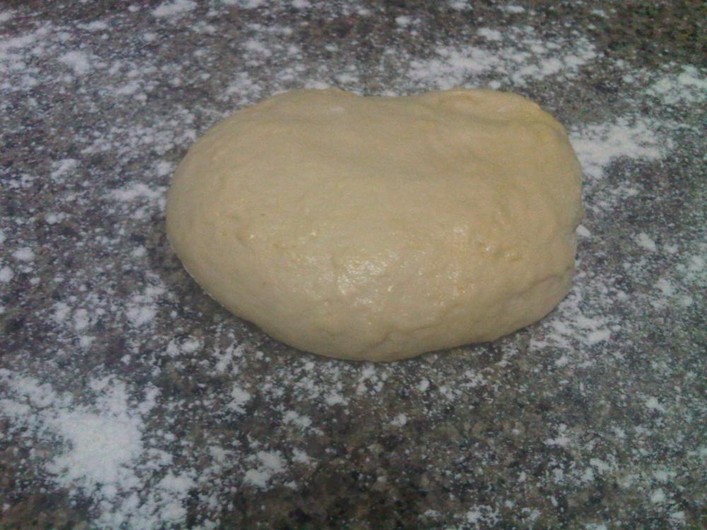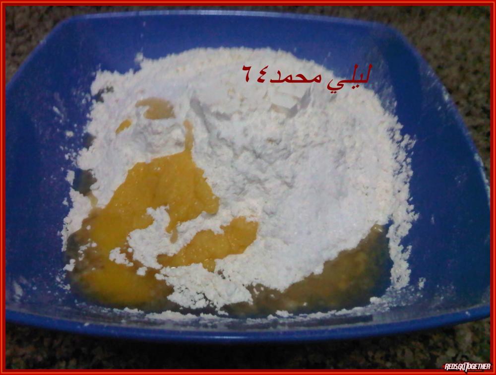 نحط كل المقادير مع بعض ونحط المية بالتدريج ونعجن لغاية لما نحصل علي عجينة طرية ومتماسكة