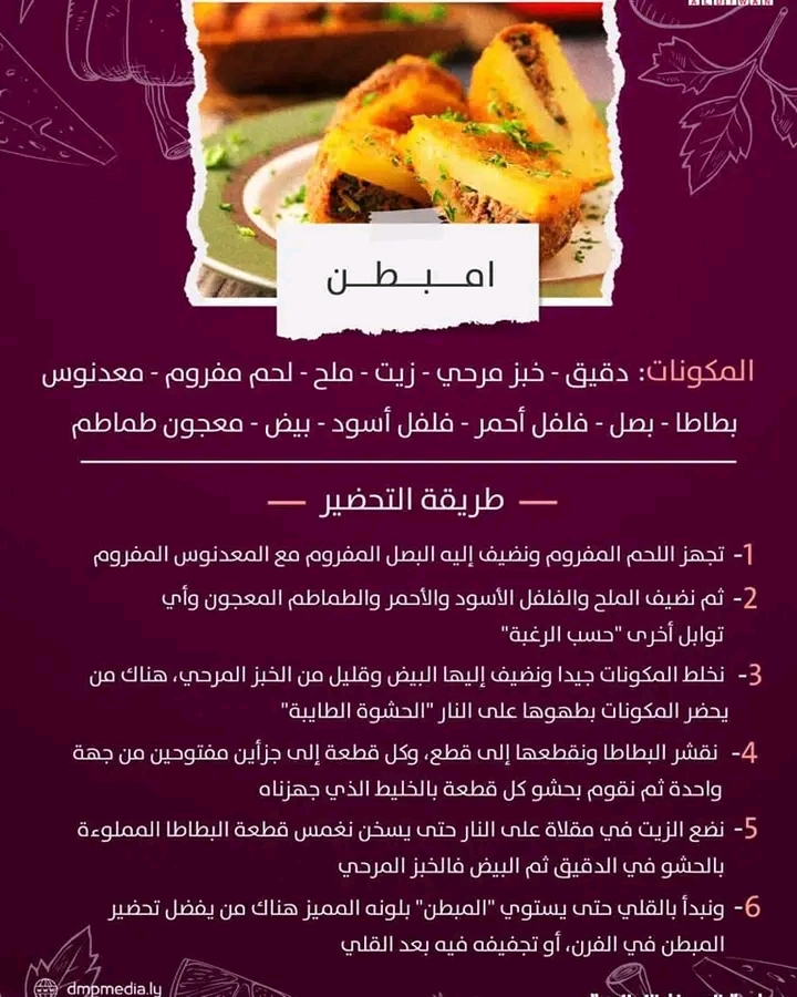 هذي طريقة المبطن الليبي او البطاطا المبطنة وصحتين مقدما اكيد تحبيها وحتجربيها
