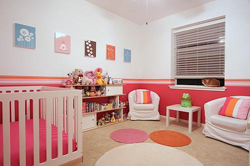شوفي لون الجدار اعرف وحده مسويه نفس الدرجتين بغرفة بنتها وطالعه روووعه بس بجدار واحد والباقي كله وردي فاااااتح مرررره