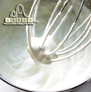 صوره الكريمه السائله بعد خفقها مع السكر البودر مع ملاحظه عدم خفقها لمده طويله لكي لا تتزبد او تتحول الى زبده