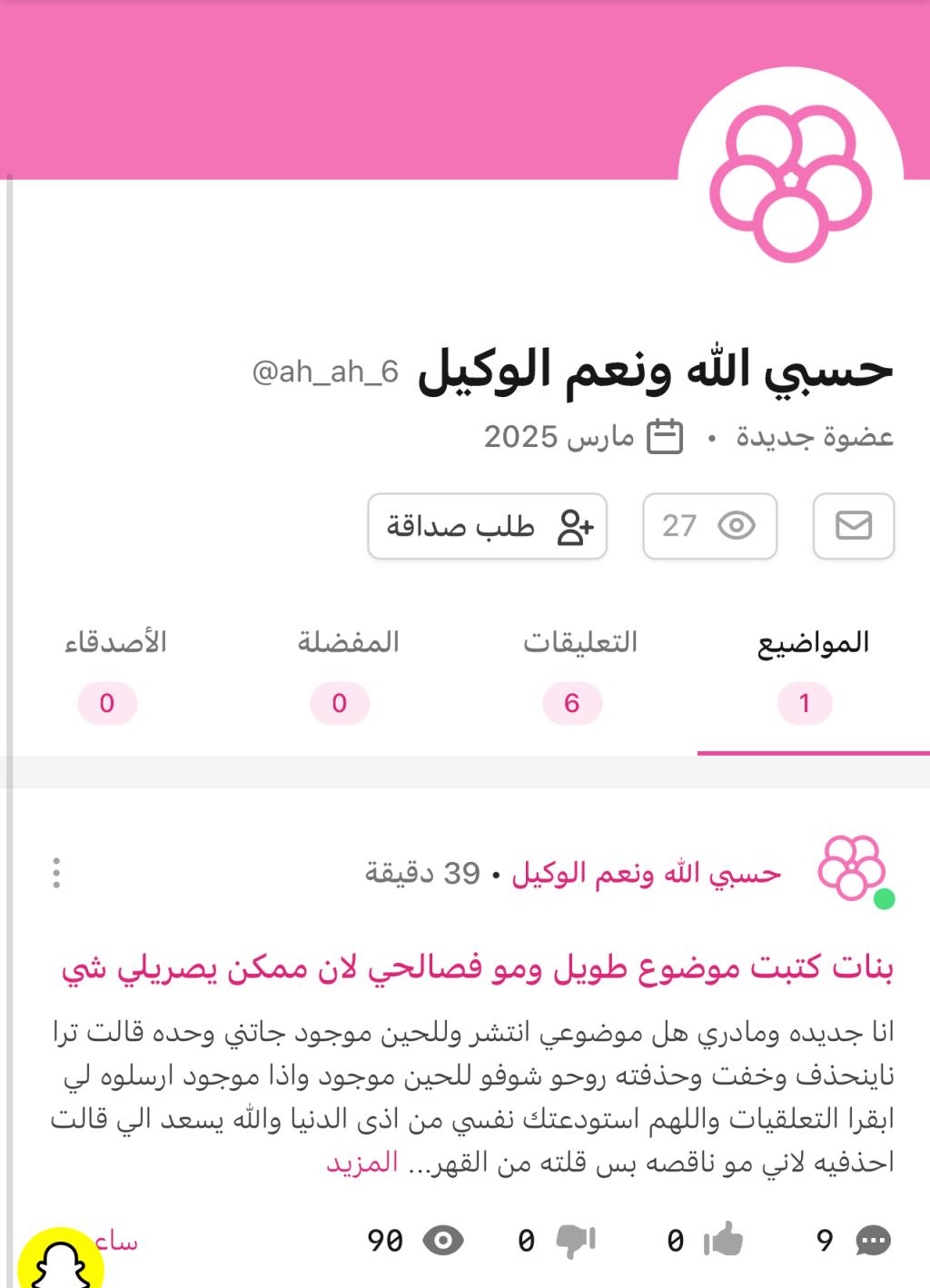 الله يسعدك ويطمنك ويفتح عليك ماتعسر اقسم بالله اني خايفه وقلبي يدق ومتوتره لان الموضوع خطير مو فصالحي ولازم ينحذف بأي طريقه وتكفين كلشوي شيكي وشوفي هو موجود ولالا خايفه مره ماعرف شي بلبرنامج وانتي قريتي الموضوع؟ كله ولالا وش رايك بظلم حاولي تبيني لي من الظالم اذا تعرفي بس بطريقه غير مباشره والله يسعدك واذا باقي الموضوع كيف اسوي وش اسوي اسفه اذا صغطت عليكالله يسعدك ويطمنك ويفتح عليك ماتعسر اقسم بالله اني خايفه وقلبي يدق ومتوتره لان الموضوع خطير مو...