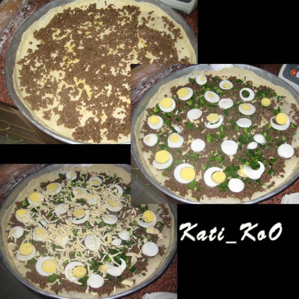 لحم + فلفل وشمار + بيض مسلوق مقطع شرائح + جبنة كرافت مبشورة