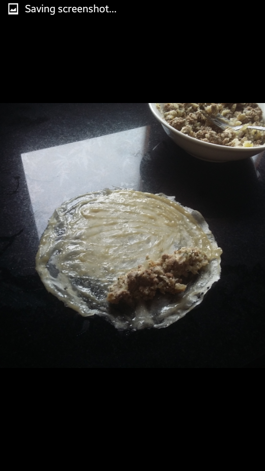 نخلط كل المكونات مع بعض و نحشي بيها البوريك على شكل رول ...