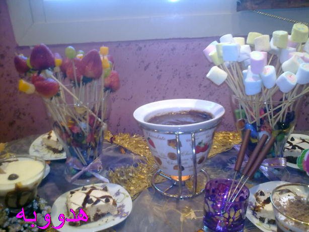 شقف بالايسكريم - فوندوالشوكلاته مع مارشميلو وفواكه