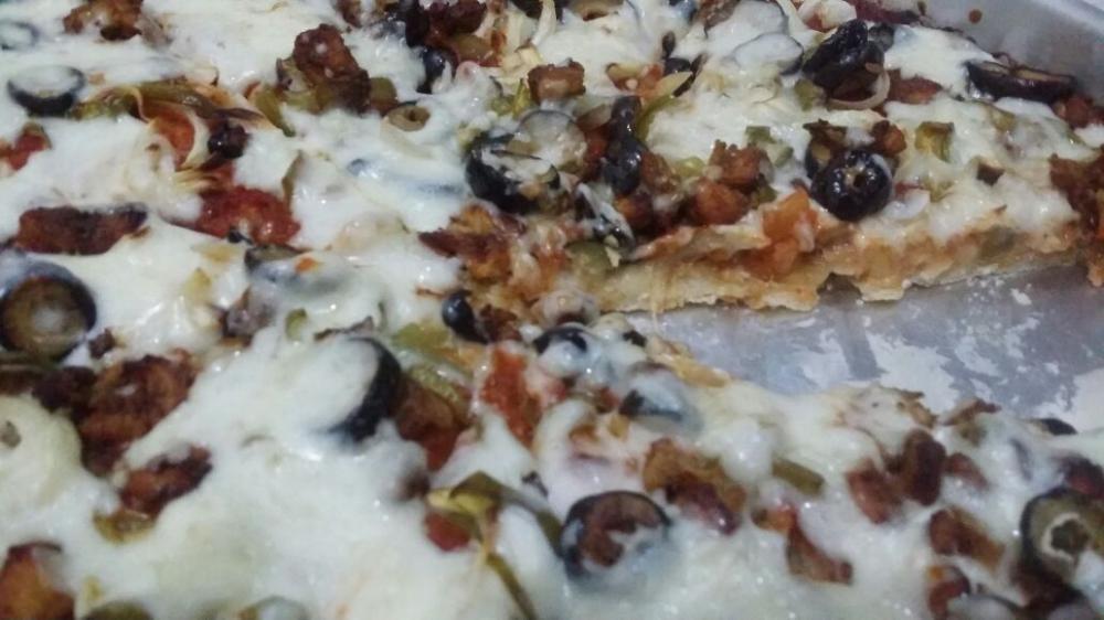 تمدي العجينه بالصحن والكشنه وقطع الدجاج والفلفل البارد والبصل والزيتون الاسود وتدخليها فرن حار من تحت ثم فوق ثم تخرجيها رشي الموزاريلا ودخليها الفرن أقل من دقيقه الين تذوب الجبنه