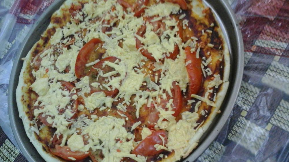طماطم مقطع وفلفل حار مبروش وفلفل اسود وكمون وصلصة نفس طريقة اي بيتزا ..