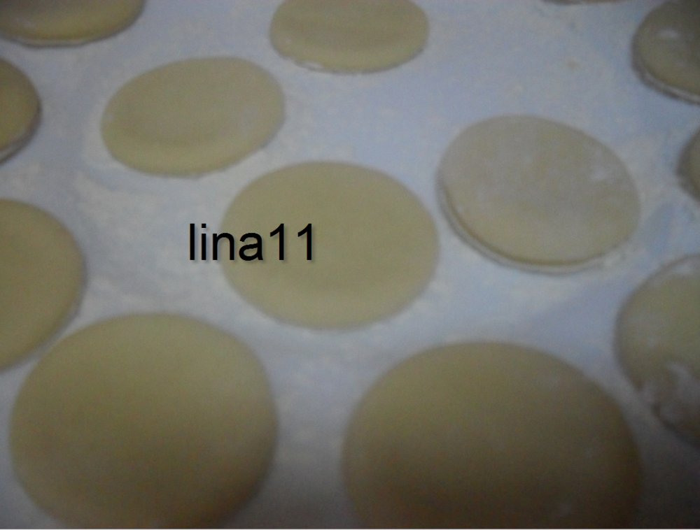 نفرش قطعة قماش نضيفة ونضع عليها دقيق ونضع دوائر عليها ونتركها تخمر جيدا