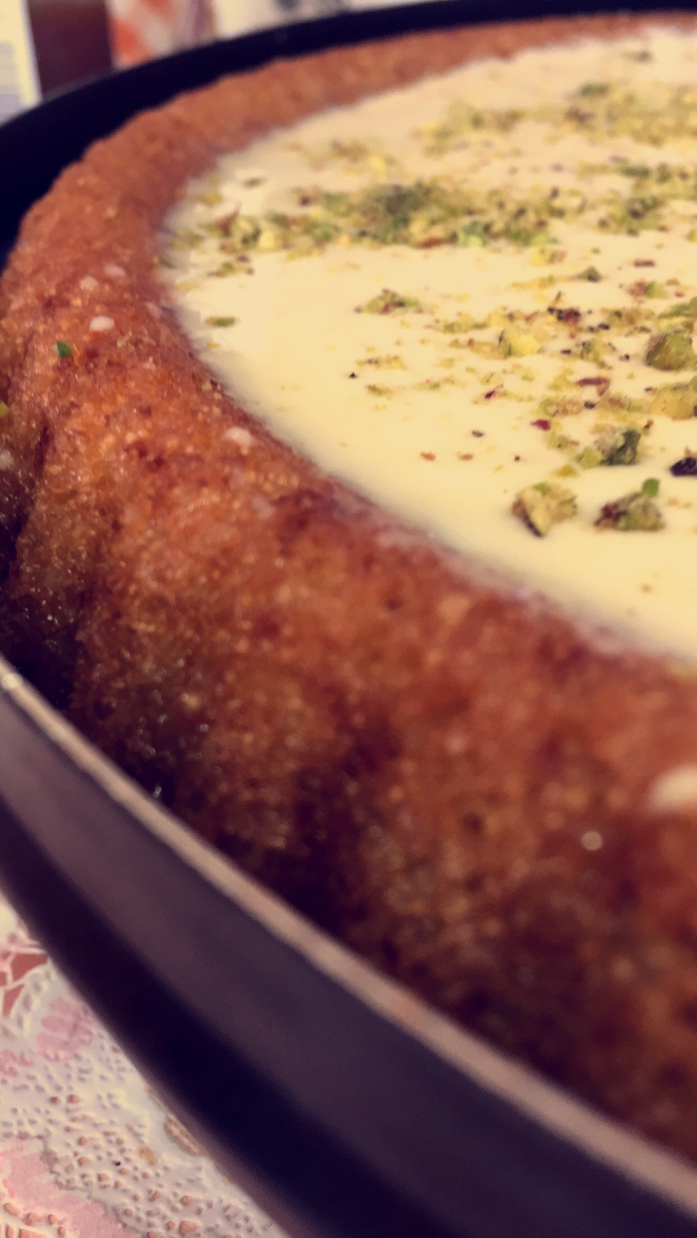 وبعدين حطي قشطه القيمر انا ضفت عليها حبتين جبنه كيري وسكر. وازينها بالفستق