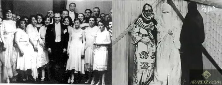 وهذه الصورة توضح زي المرأة التركية قبل وبعد عهد أتاتورك