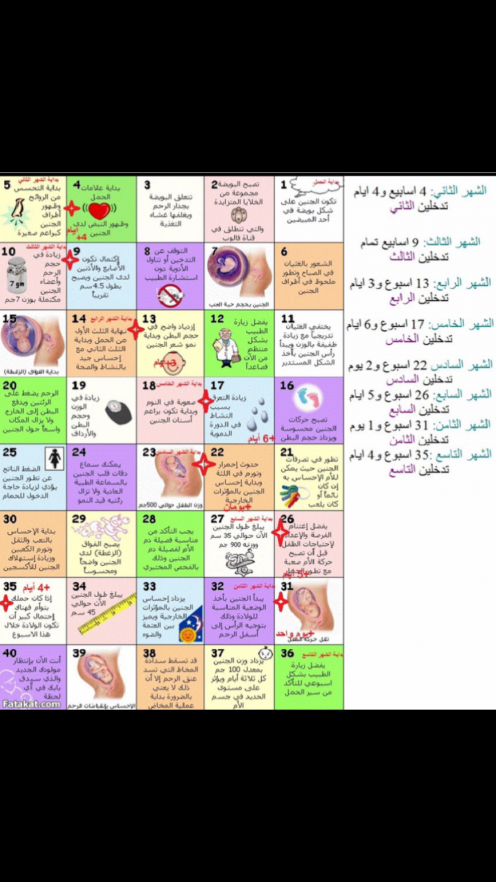 المهم بنات شوفو الصوره ونا اقول ليه التاسع لخبطه ع خبري ٣ و٤ و ٨ و٩ خمس اسابيع طلع فيه زود ايام 😅وحنا نعد الايام ليلة بليلة ،يلا هانت لي حمدالله عقبال الي بعدي