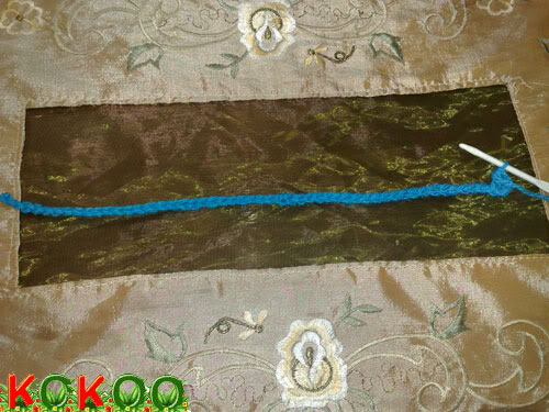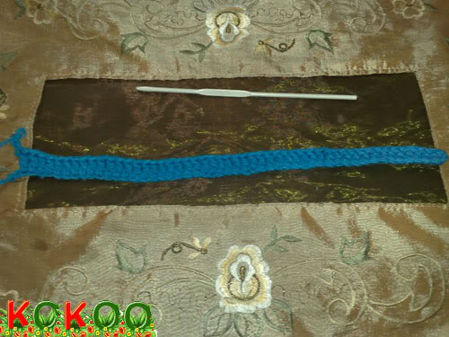 نشتغل عدد من السلاسل وليكن 35 سلسلة اذا اشتغلنا بخيط صوف و50 سلسلة اذا كان الخيط من القطن