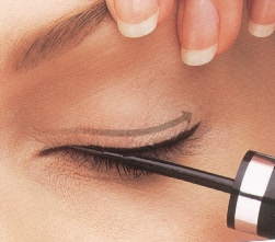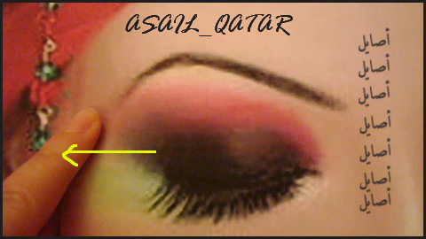 وبعدها ترسمين الكحل من بداية مدمع العين الى اخر منطقة الجفن