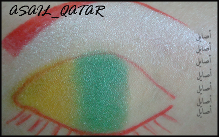 ونحاول ندمج بين اللون الاخضر والأصفر بطرف الصبع ع الخط اللي انا اموضحته