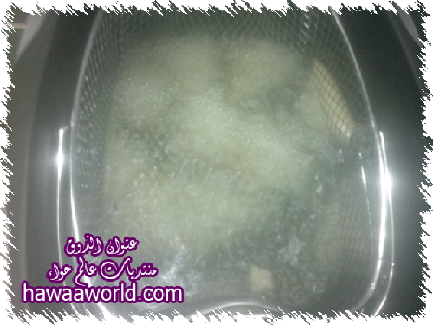 وطبعا لو تلاحظون انا ماسكتها بطرف القلايه عشان لا ينزل الشبك مره