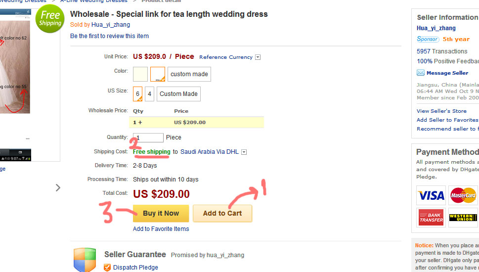 طبعا هنا اتفقت مع البائع على فستان معين وبالوان معينه واتفقنا على المقاسات والسعر