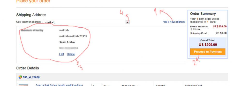1- اضافه عنوان جديد.. مثلا لو حابة تغيرين العنوان تظغطين هنا وتطلع لك فراغات تعبينها بالبيانات المطلوب للعنوان الجديد.. او ممكن تتجاهلي هذا الخيار وتكملين على نفس عنوانك