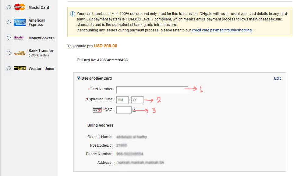 الحين نظغط على رقم 2 وتطلع لك هالصفحه وهي صفحة الدفع