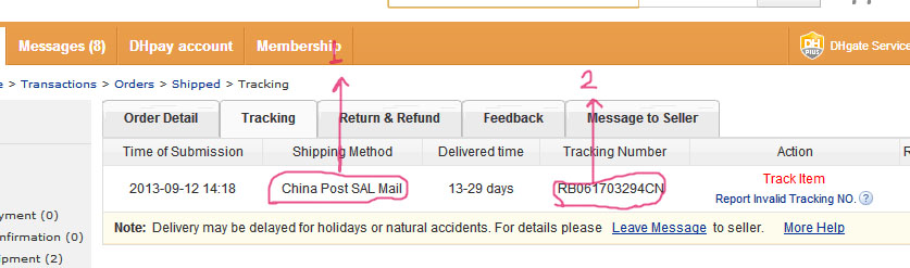 1- اسم شركة الشحن ( هنا موضه انه مشحونة على البريد الصيني وماكنت ابي ..طلبت جيبون من بائع ثاني وكان كاتب بصفحه الجيبون انه مشحون على ems بس طلع شاحنه على البريد الصيني.. صار لها تقريبا 3 اسابيع من انشحنت وللان مااستلمتها :((( )