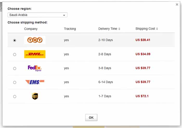 جربت الشحن على dhl وعلى ارامكس وعلى البريد الممتاز اللي هو ems وعلى tnt