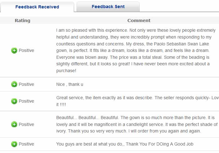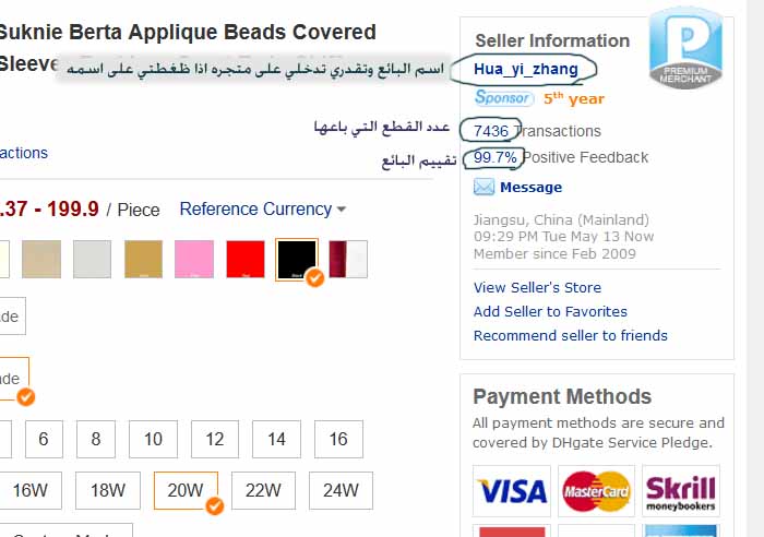 فقد طلبت مرة من بائع تقييمه 99% وباع اكثر من 9 الاف فستان ولكن بالحقيقه لم يعجبني كثيرا ..حيث ان طلبت من المصنع الذي اتعامل معه حاليا نفس الفستان .. وفرق كبير بينهما