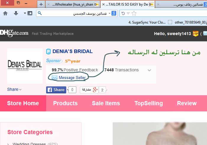 (هنا عندما تريدين طلب فستان معين .. تفتحين رساله كما تعلمتي سابقا تدرجين الصور بالمرفقات وتكتبين الرساله ثم ترسلينها )