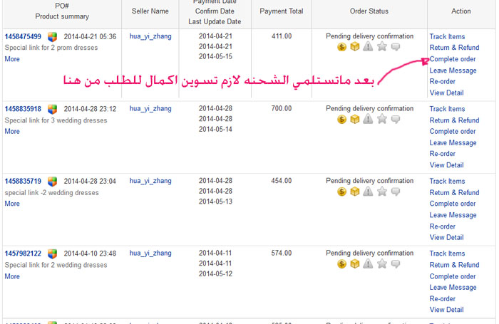 تروحي عند ملفك الشخصي ثم الى awaiting shipment