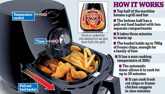 طبعا هنا لازم نقلب كل 5دقايق أو أكثر شوي عشان ماينحرق اللي فوق لأنه أصلا تقنيتها عين زي عين الفرن الكهربائي مع مروحة لتوزيع الهواء الساخن بالتساوي مما يجعل الأكل ينضج بمستوى واحد:26: