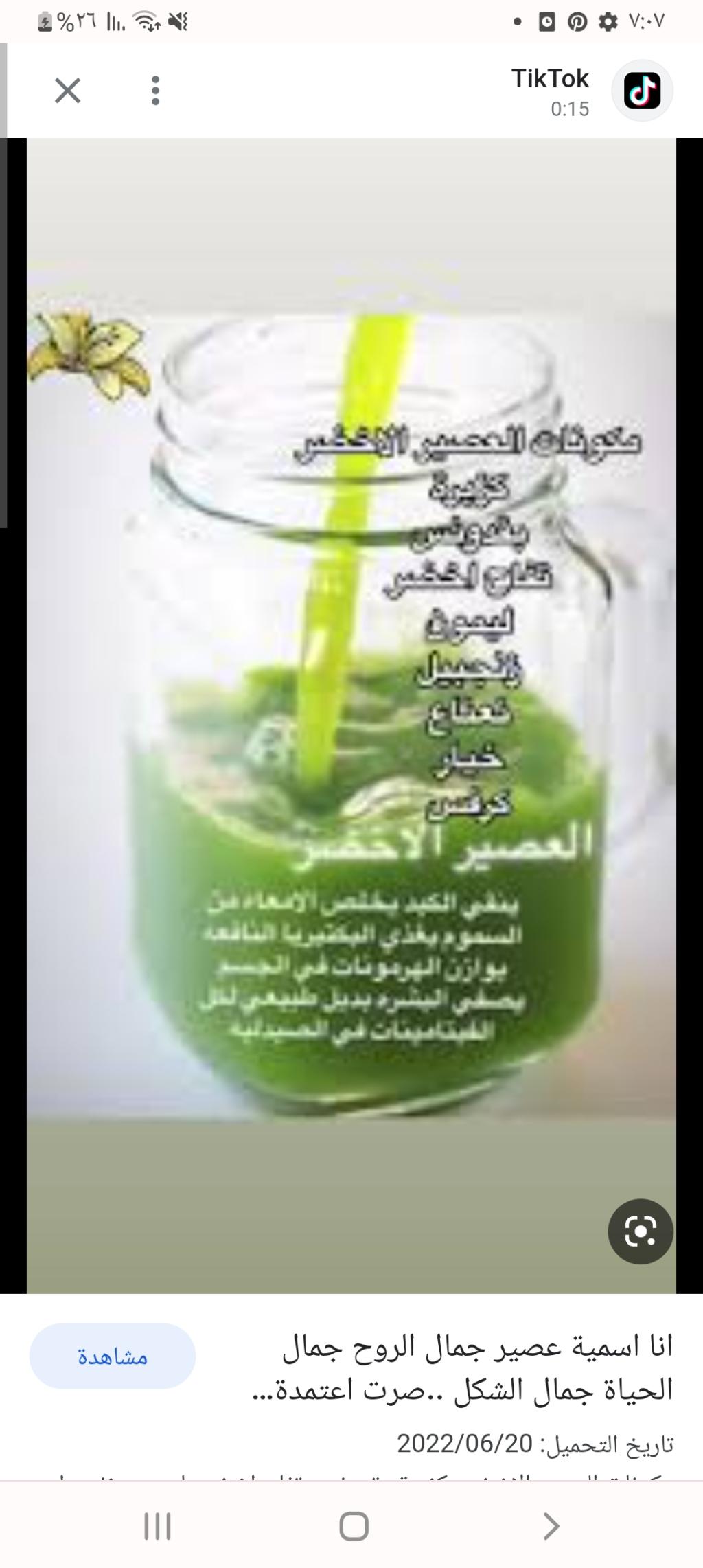 رجع تساقط شعري بعدما تركت العصير الأخضر عباره عن (خيار وسلق وجرير وبقدونس وكزبره )ممكن تضيفين معه فواكه اوتمر يعطي طعم حلو اخذمنه ثلاث كاسات