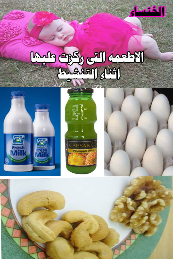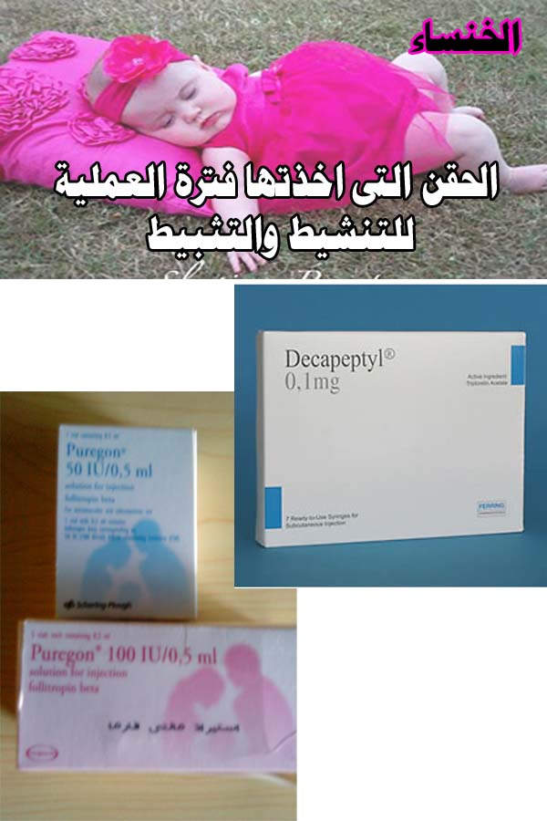 فتره التنشيط كنت اخذ ابر بريجون بقوة 150 كنت اخذها بالمنزل لمدة اسبوعين ومتابعه سونار كل يومين وكنت فتره التنشيط حرصت على اطعمه معينه ( بروتين - حليب - عصير اناناس - مكسرات ) ومستمره على فيتامين وجلوكوفاج حبه مرتين باليوم لانه عندى تكيس